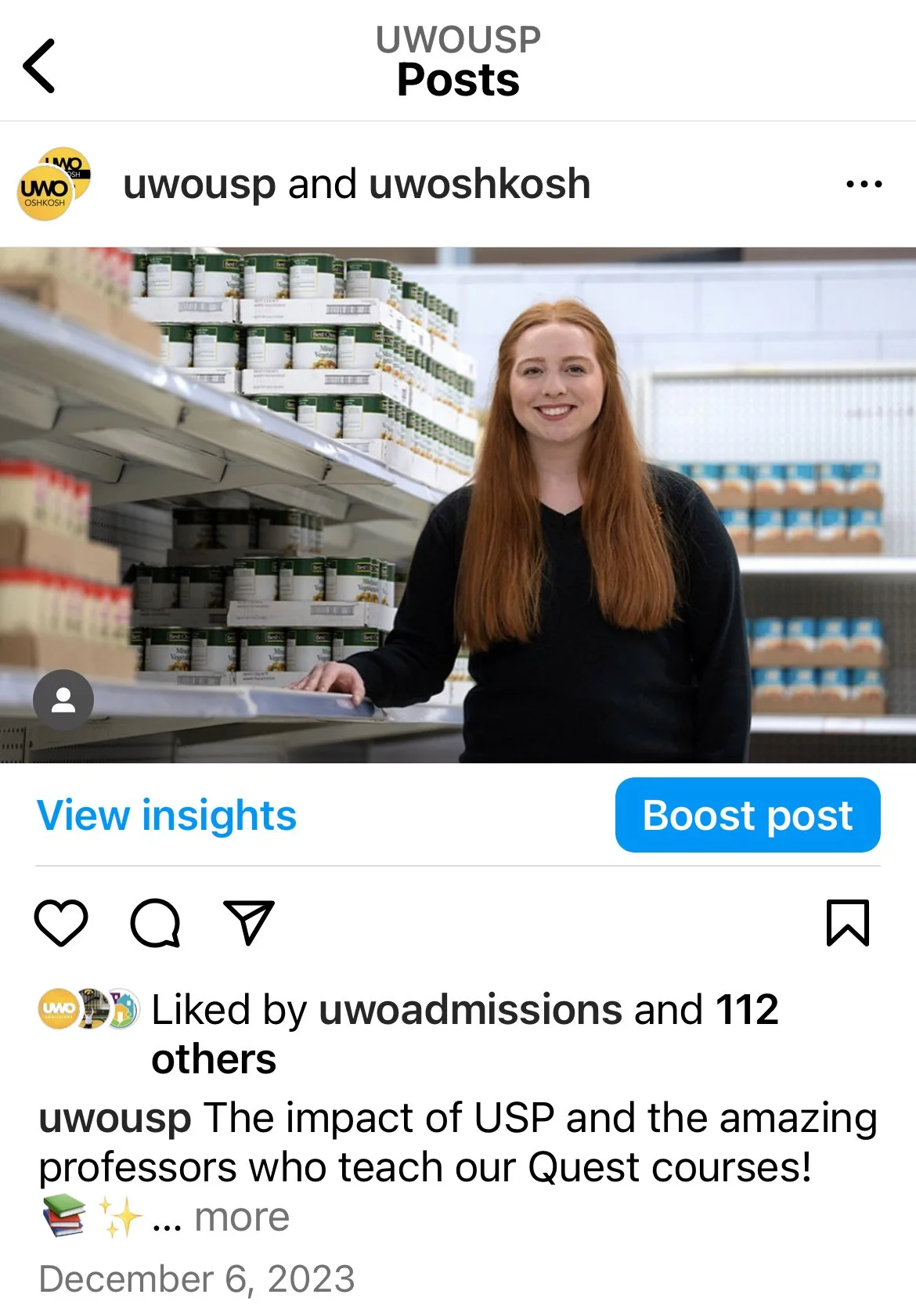 In the fall of 2023, I interned at UWO’s Center for Civic and Community Engagement, where I ran the University Studies Program’s social media. These are samples from my JAMS class and real content I’ve created for the USP pages.